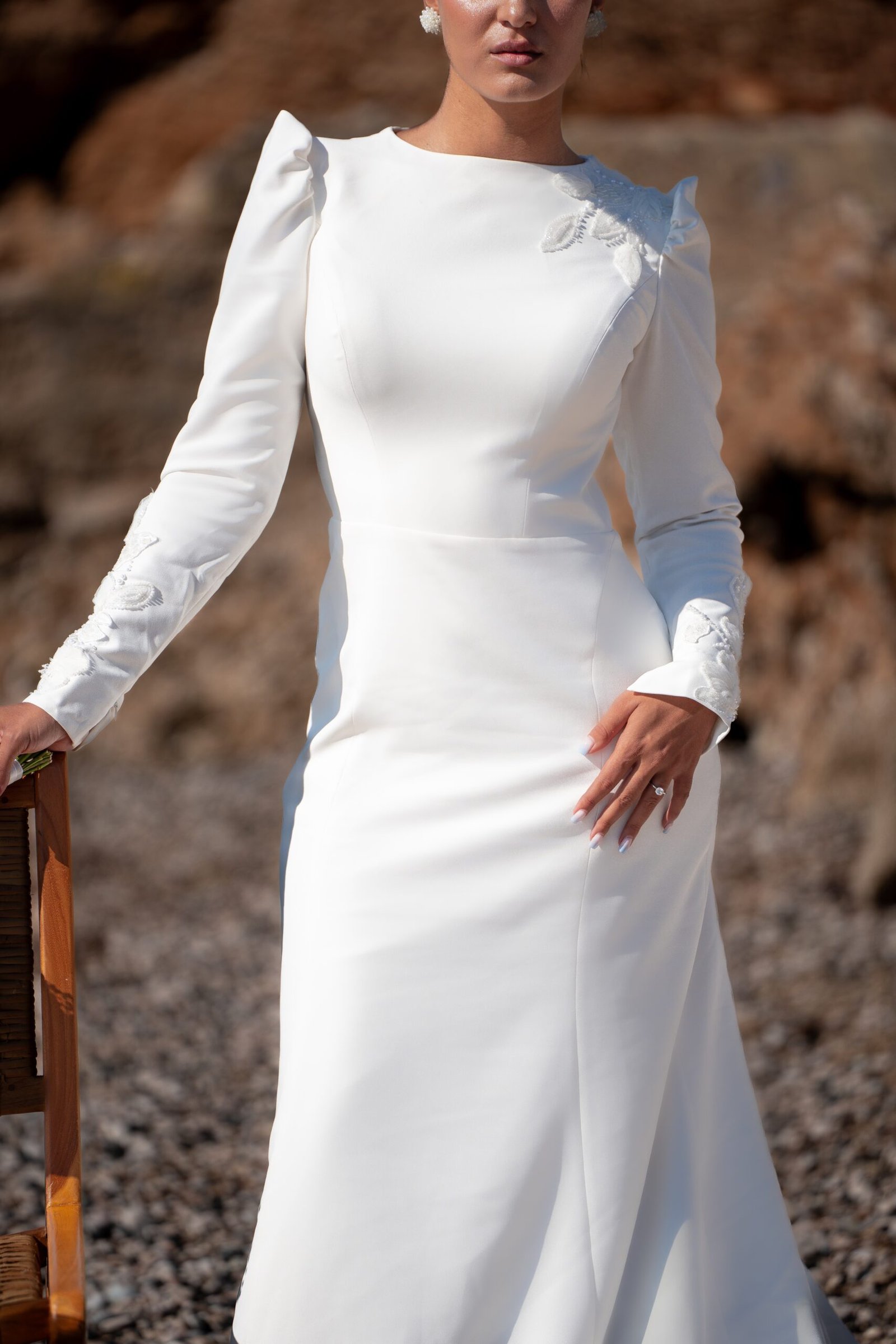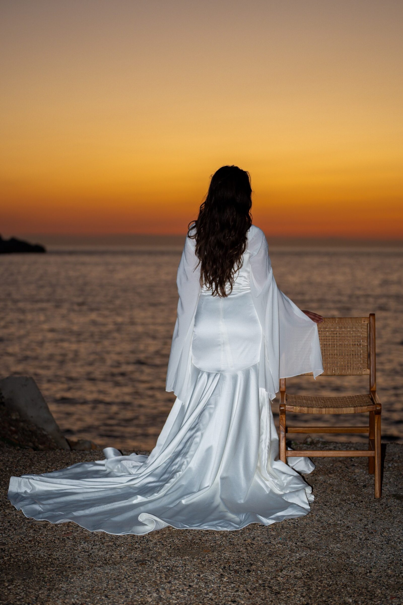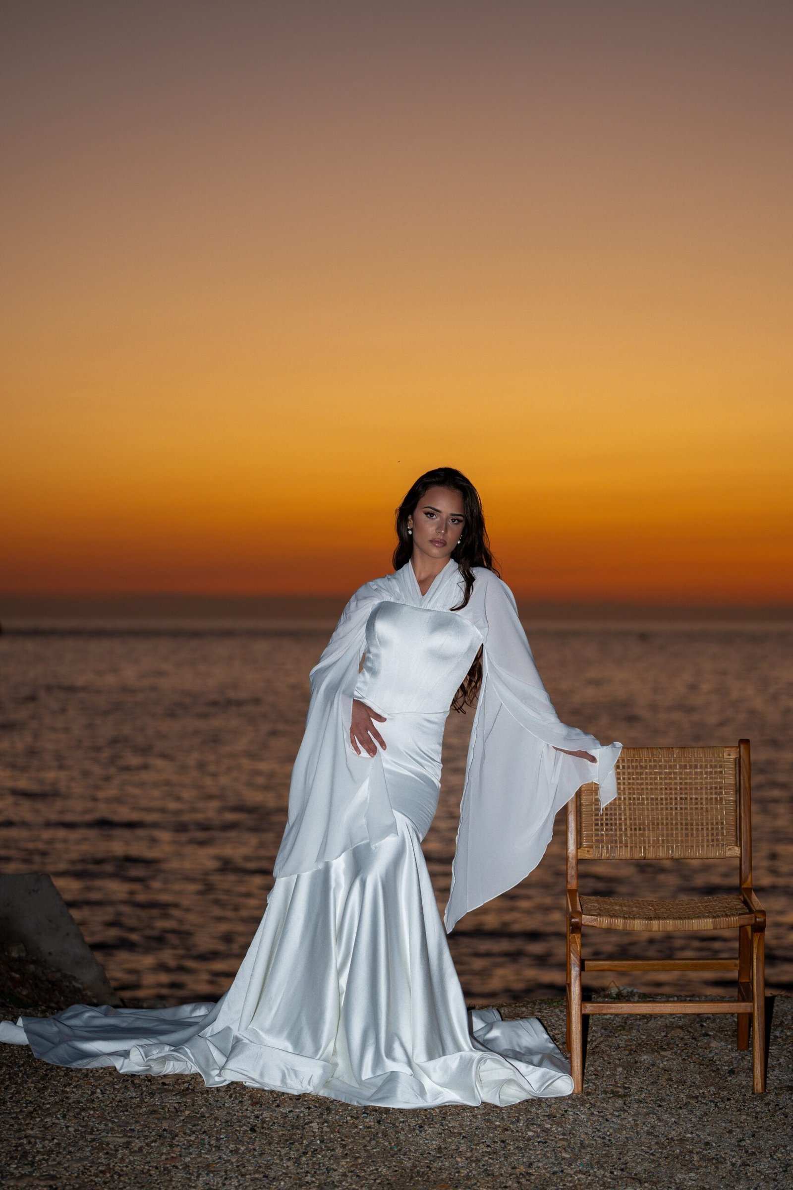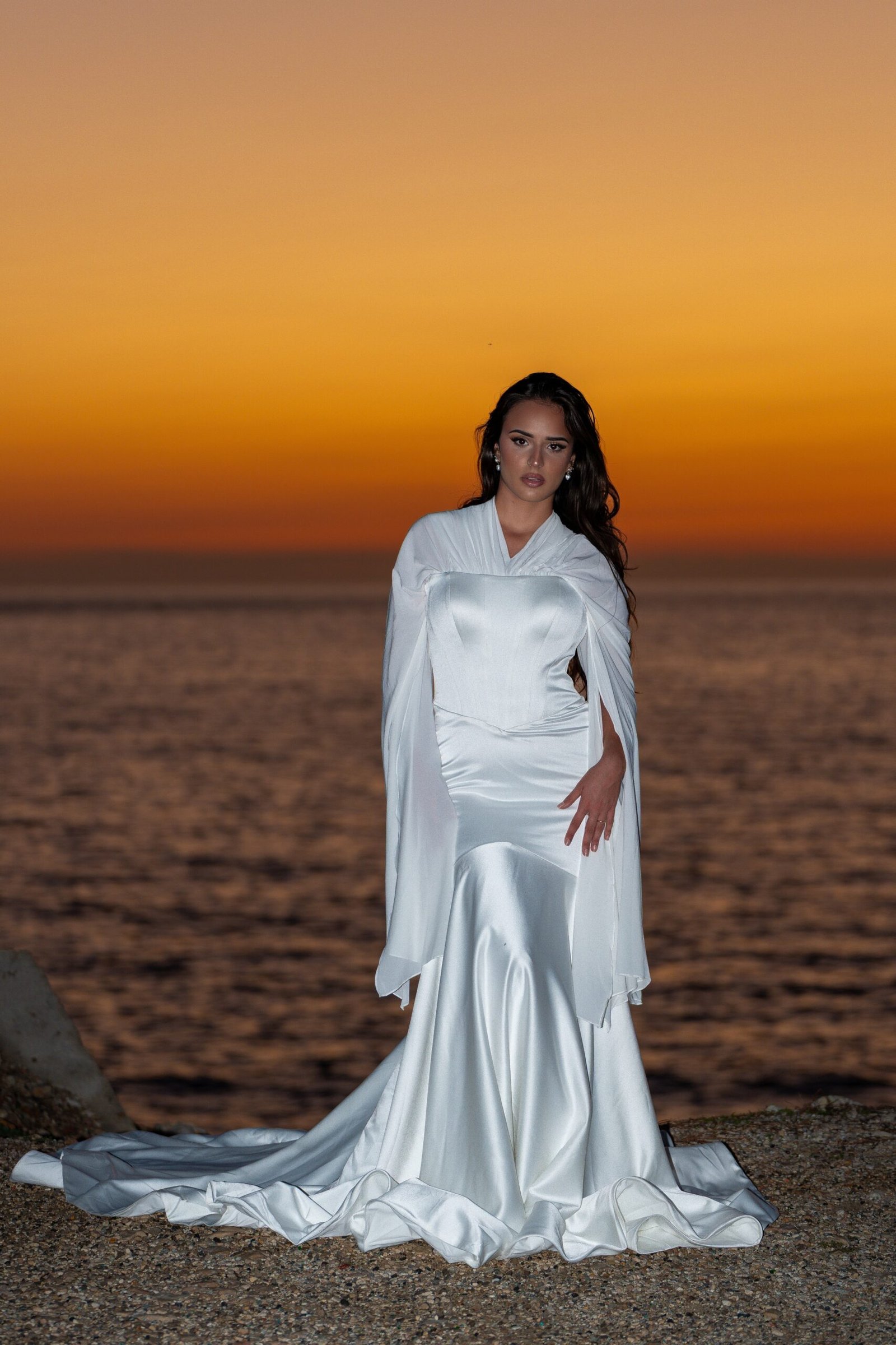EIRALYA évoque la puissance tranquille et la grâce sculpturale d’une mariée qui ose la prestance.